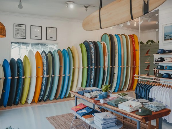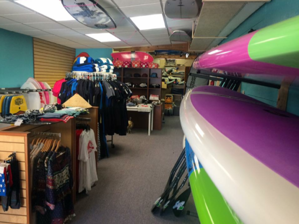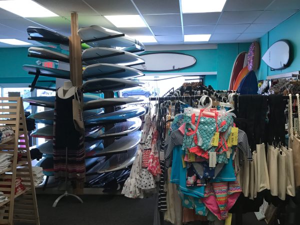 - Wetsuits, rash guards, skimboards, skateboards, and beach accessories